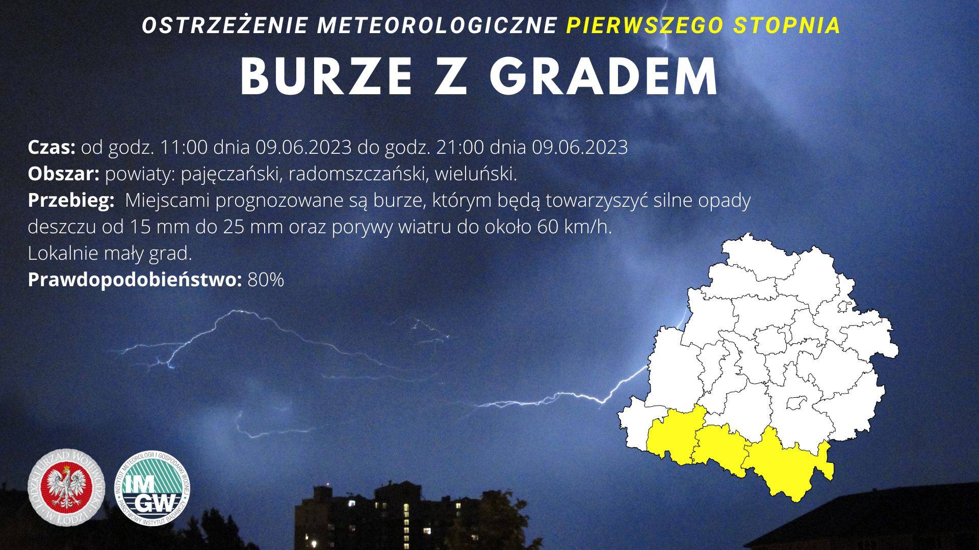 Mieszkańcy południowych powiatów województwa łódzkiego muszą liczyć się z dynamiczną pogodą. Instytut Meteorologii i Gospodarki Wodnej wydał ostrzeżenie meteorologiczne I stopnia dotyczące burz z gradem.