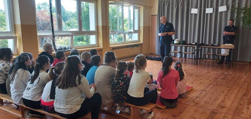 W trosce o bezpieczeństwo dzieci na wakacyjnych wyjazdach, policjanci uczestniczą w spotkania w szkołach. Uświadamiają uczniów o przestrzeganiu podstawowych zasad bezpieczeństwa oraz prowadzą działania profilaktyczno - informacyjne ukierunkowane na edukację młodzieży szkolnej. 22 czerwca policjanci z Komisariatu Policji w Działoszynie i Komendy Powiatowej Policji w Pajęcznie spotkali się z wychowankami ze Specjalnego Ośrodka Szkolno-Wychowawczego w Działoszynie oraz uczniami Szkoły Podstawowej w Siemkowicach i Dworszowicach Pakoszowych.