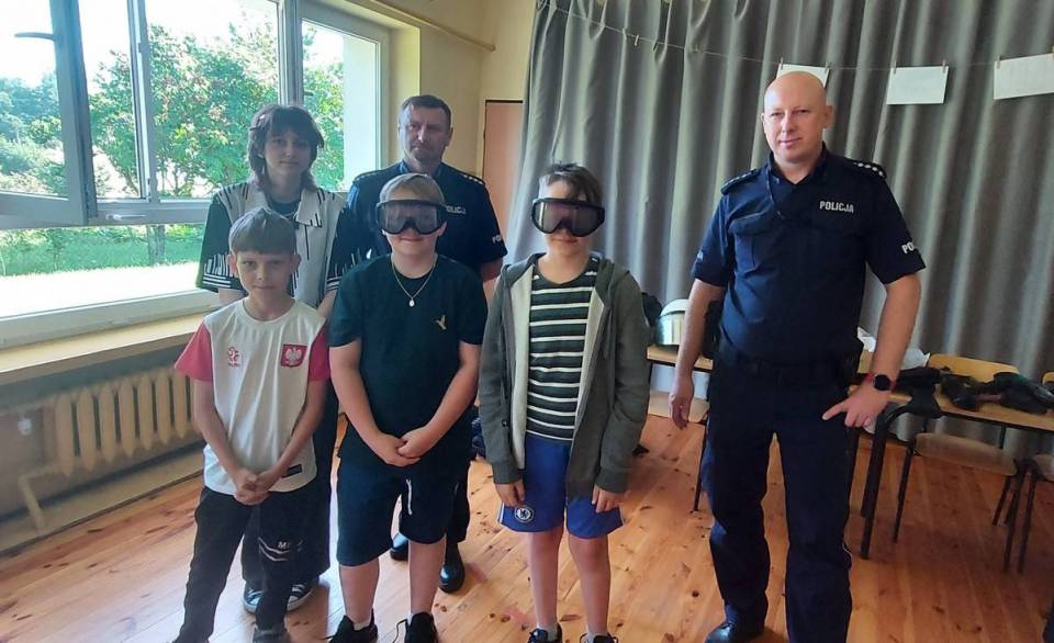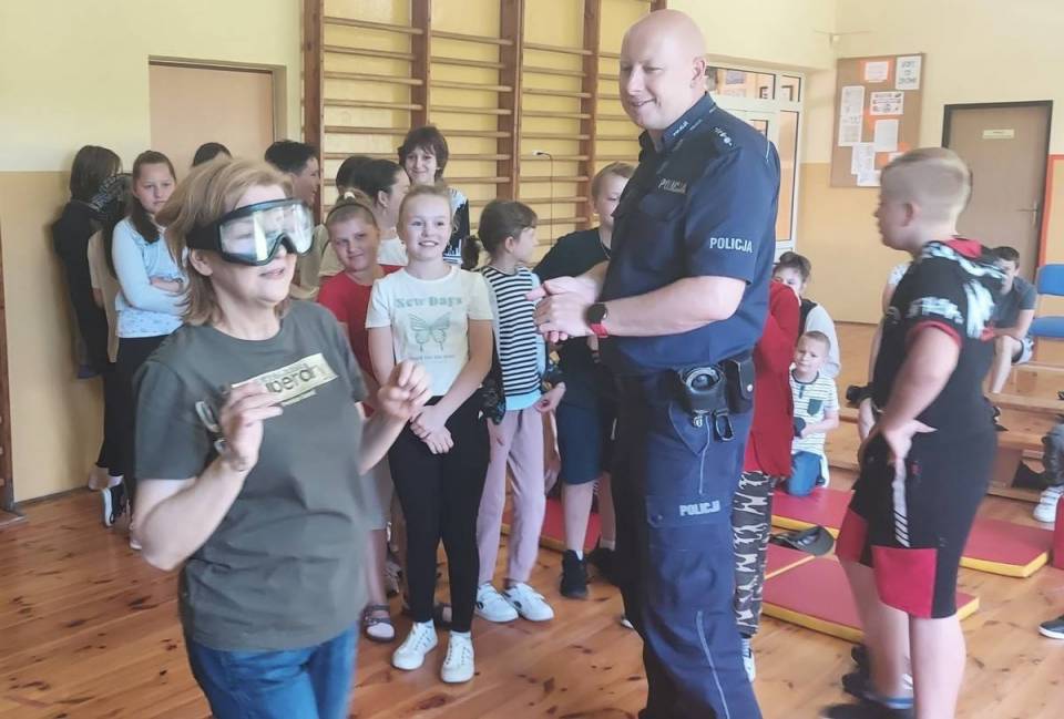 Uczniowie Szkoły Podstawowej w Dworszowicach Pakoszowych dowiedzieli się na czym polega służba w policji, poznali specyfikę jej pracy. Mieli możliwość zobaczyć, a także przymierzyć sprzęt policyjny wykorzystywany w codziennej służbie przez mundurowych. Na zakończenie policjanci życzyli uczestnikom bezpiecznych i pełnych niezapomnianych wrażeń wakacji.