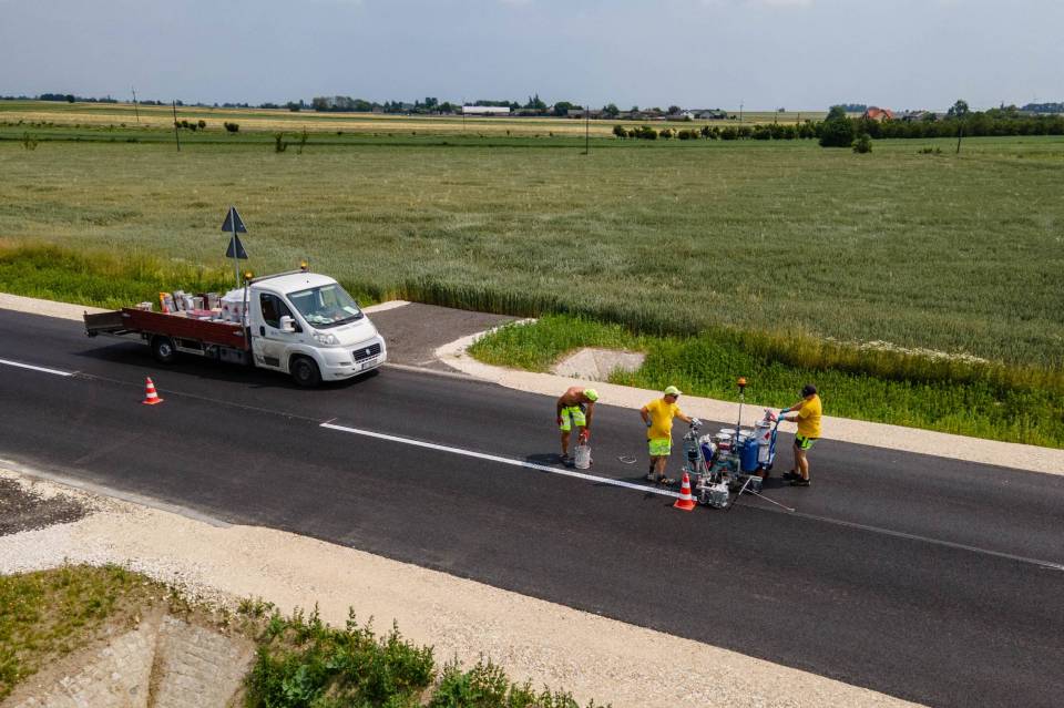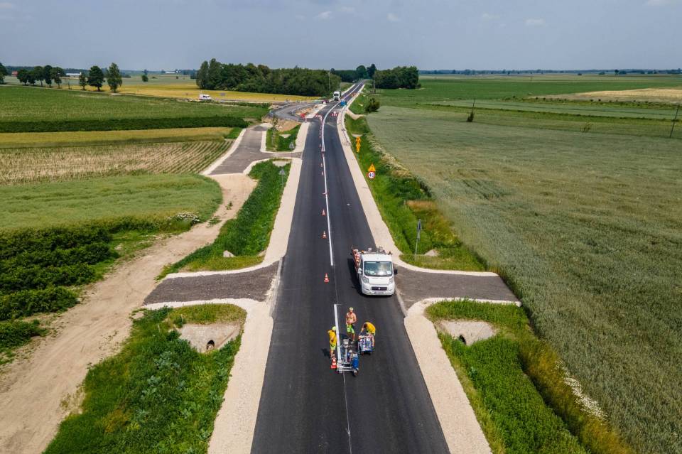 Obecnie trwają prace związane z malowaniem oznakowania poziomego – to jeden z ostatnich etapów inwestycji. Głównym elementem projektu był nowy przepust drogowy, który zastąpił wysłużony most z 1947 roku, znajdujący się w złym stanie technicznym.