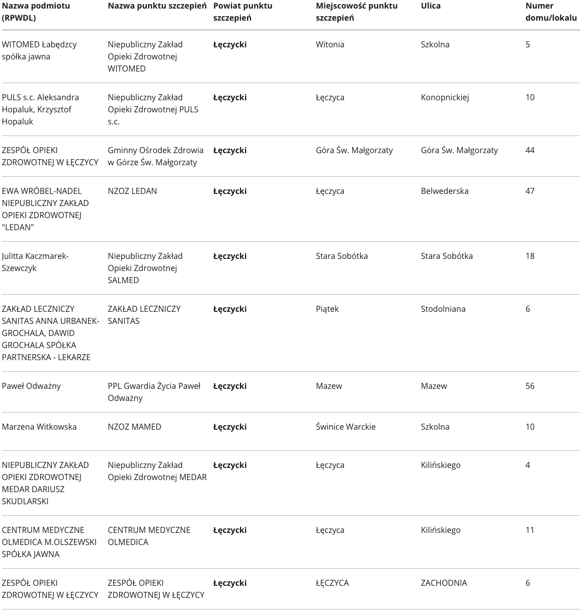 W województwie łódzkim aktualnie zaakceptowano ponad 400 punktów, w których odbywać się będą szczepienia na Covid-19. Specjalnie dla Państwa prezentujemy wykaz punktów, z podziałem na poszczególne powiaty.