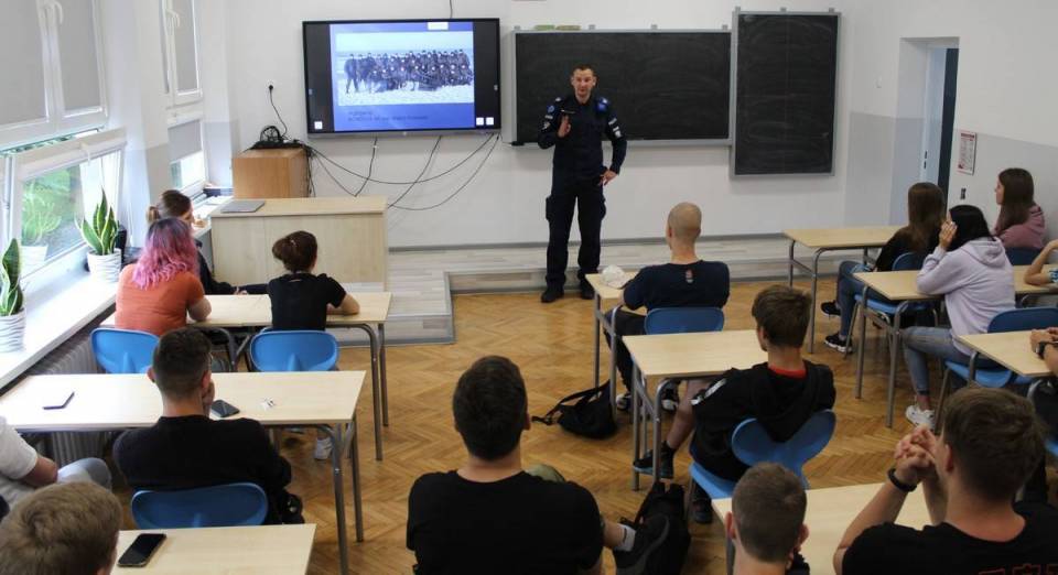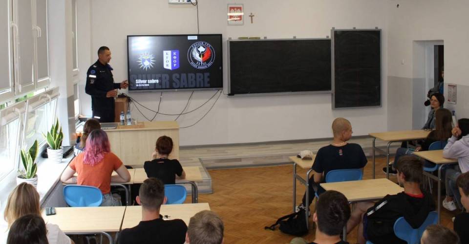 Przebywający obecnie na misji w Kosowie funkcjonariusz Komendy Powiatowej Policji w Pajęcznie sierż. sztab. Damian Sztangreciak rozmawiał z młodzieżą klas mundurowych. Spotkanie z członkiem Jednostki Specjalnej Policji w Kosowie miało na celu przybliżyć młodym ludziom cel misji, charakter wykonywanych zadań oraz pokazać różnorodność służby w Policji.