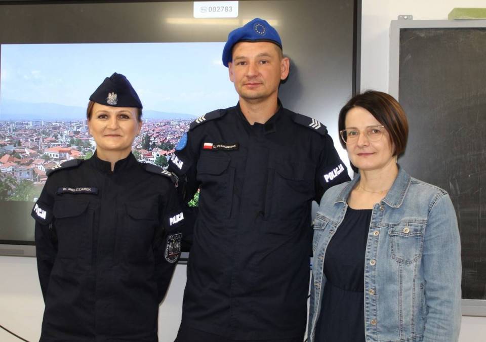 - Młodzież dowiedziała się jak wyglądała procedura rekrutacyjna doboru wyjazdu do Kosowa. Na tym etapie rozmów policjant uświadomił młodzież, jak ważne były zdobyte kwalifikacje, uprawnienia, znajomość języka angielskiego, które w zdecydowany sposób przyczyniły się do zakwalifikowania na wyjazd. Każde zdobyte umiejętności mogą przydać się w różnych etapach naszego życia. Najciekawszym jednak momentem spotkania była opowieść o służbie w Kosowie w Nitrowicy. Polega ona głównie na wspieraniu lokalnej policji, monitorowaniu miejscowych nastrojów, sprawowaniu nadzoru nad przejściami granicznymi. Służba na misji za względów bezpieczeństwa pełniona jest w opancerzonych pojazdach. Policjanci tam są zdani sami na siebie a więc ze względów bezpieczeństwa nie tracą się z zasięgu wzroku - relacjonuje przebieg spotkania Wioletta Mielczarek z pajęczańskiej komendy policji.
