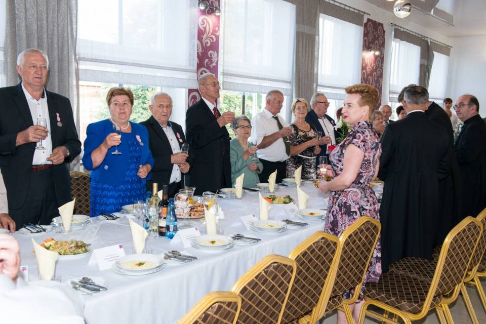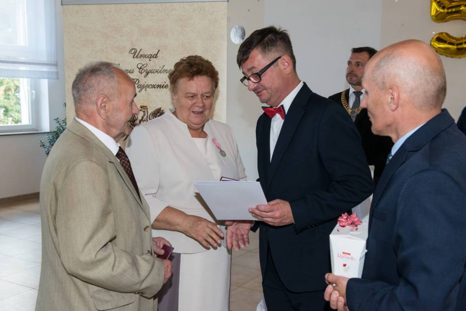 Zaproszeni goście wraz z Burmistrzem Pajęczna, w kierowanych do Jubilatów słowach podkreślili, że dzisiejszy Jubileusz jest idealnym momentem odznaczenia tych wszystkich, którzy przez lata tworzyli wzór podstawowej jednostki społecznej, jaką jest rodzina. Niebywałą sztuką jest tworzenie małżeństwa w znoju i chorobie, w radości i szczęściu przez tak długie lata, w dobrej relacji. Gratulując parom, podkreślono wdzięczność za piękny, bezcenny dar, głęboką miłość, wzajemne zrozumienie i wyrozumiałość, które pozwoliły kroczyć wiele lat jedną drogą i są wzorem dla wszystkich. Zaznaczając, że małżeństwo to rozmowa, akceptacja, kompromis i miłość.