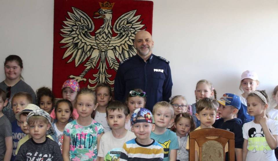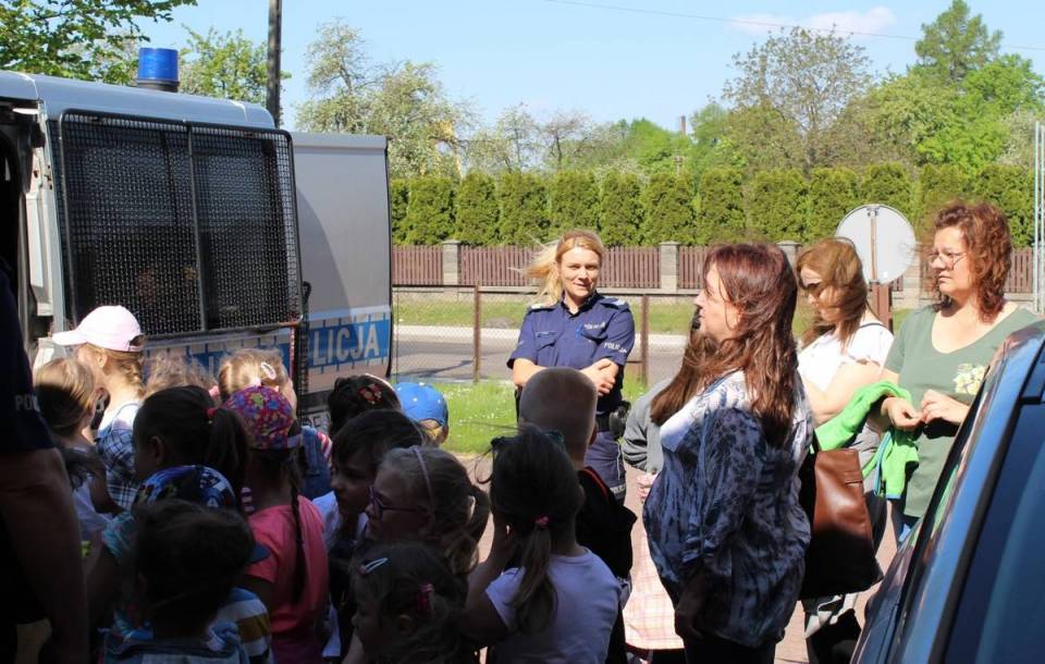 12 maja pajęczańskich policjantów odwiedzili najmłodsi uczniowie ze Szkoły Podstawowej nr 1. Dzieci przywitał komendant insp. Karol Mielczarek i zaprosił małych gości do zapoznania się z policyjnym sprzętem wykorzystywanym w codziennej pracy policjantów oraz obejrzenia służbowych radiowozów.