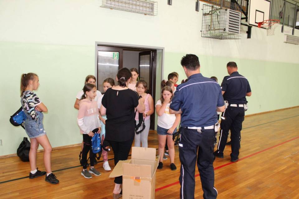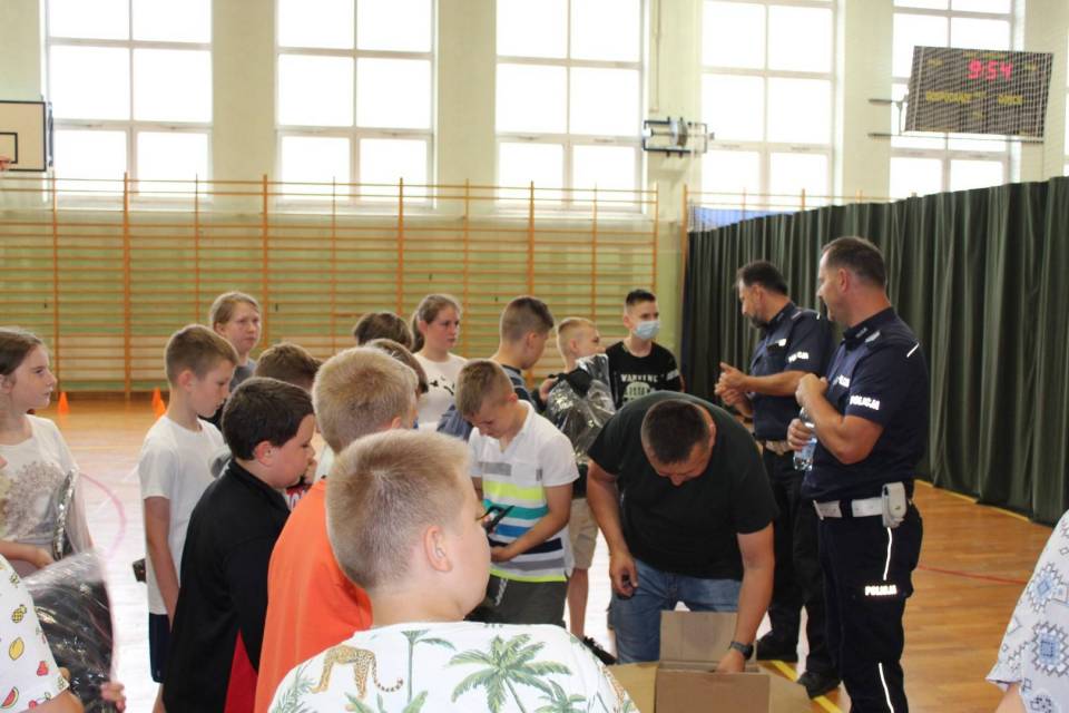 Pajęczańscy policjanci ruchu drogowego egzaminowali w Szkole Podstawowej w Sulmierzycach uczniów z Sulmierzyc i Bogumiłowic tuż przed inauguracją wakacji, 23 czerwca.
