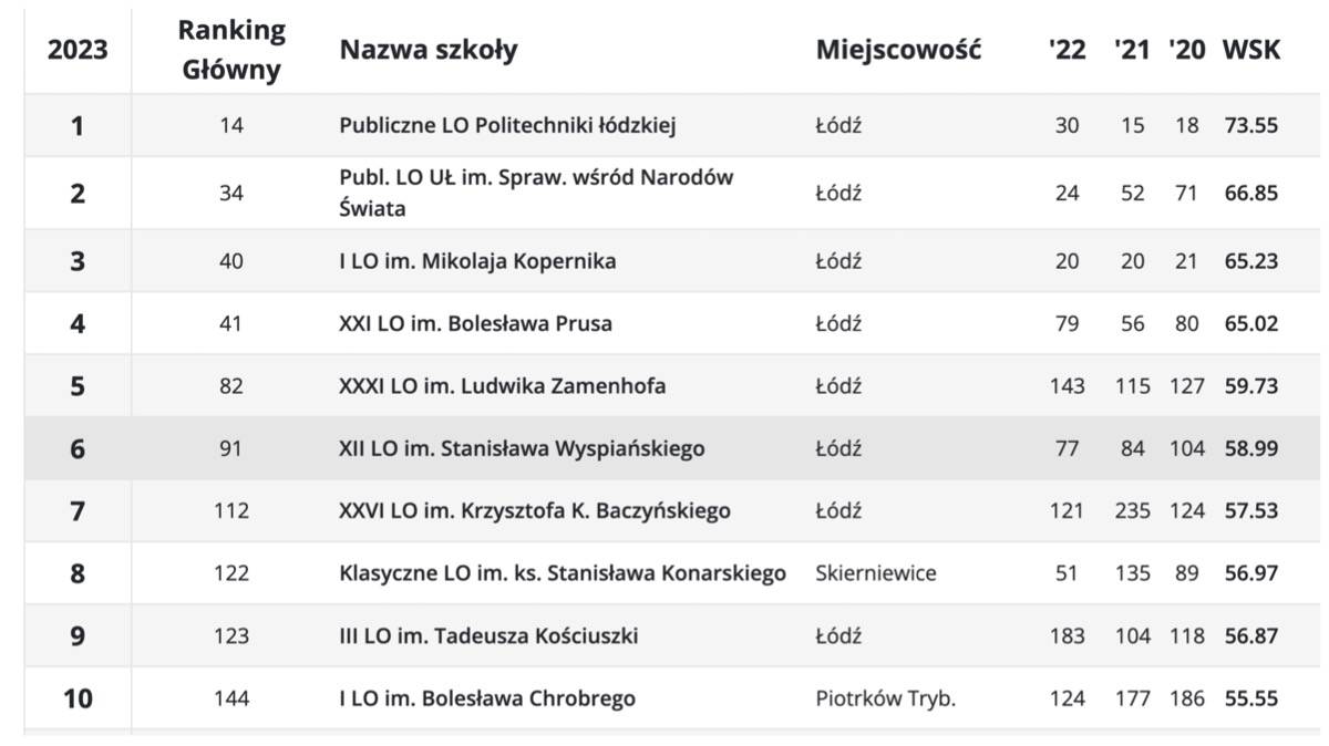 Pełny ranking dla województwa można znaleźć pod tymi linkami >>> ranking liceai technika
