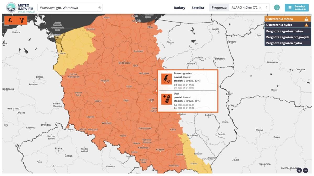 - Prognozowane są burze, którym miejscami będą towarzyszyć silne i bardzo silne opady deszczu od 25 mm do 40 mm, lokalnie około 50 mm oraz porywy wiatru do 70 km/h, lokalnie możliwe 90 km/h. Miejscami grad - czytamy w alercie II stopnia wydanym dla naszego województwa przez Instytut Meteorologii i Gospodarki Wodnej.