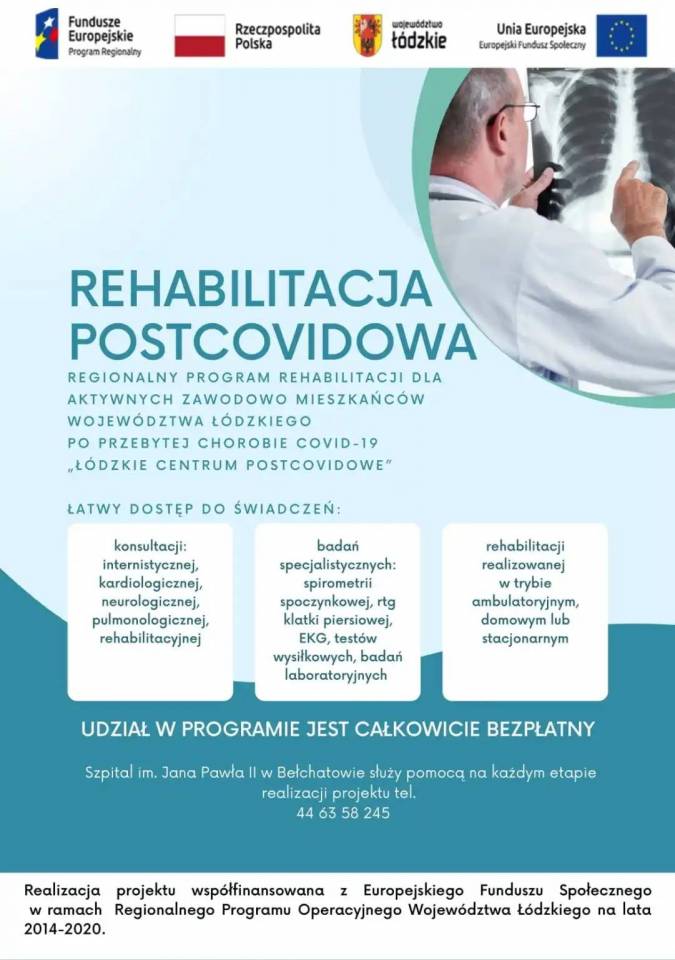 Szpital Wojewódzki im. Jana Pawła II w Bełchatowie jest jednym z partnerów Regionalnego Programu Rehabilitacji dla mieszkańców woj. łódzkiego po przebytym koronawirusie.