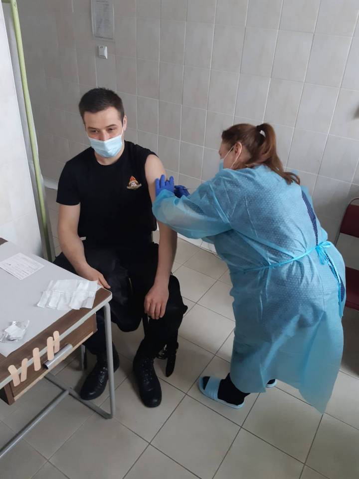 Wśród pierwszej grupy zaszczepionych strażaków jest st. bryg. Grzegorz Janowski Łódzki Komendant Wojewódzki PSP, funkcjonariusze Komendy Wojewódzkiej i Miejskiej PSP w Łodzi, druhowie z OSP Łagiewniki, Nowe Złotno, Jędrzejów.