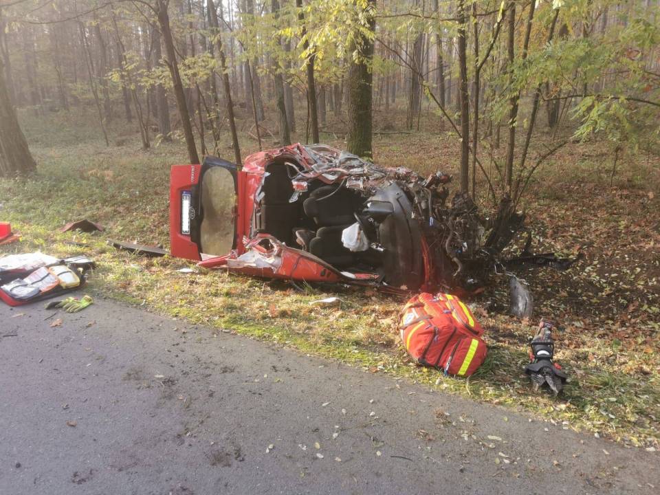 Śmiertelny wypadek w gminie Działoszyn. Nie żyje 33-letni kierowca z Kii [Foto]
