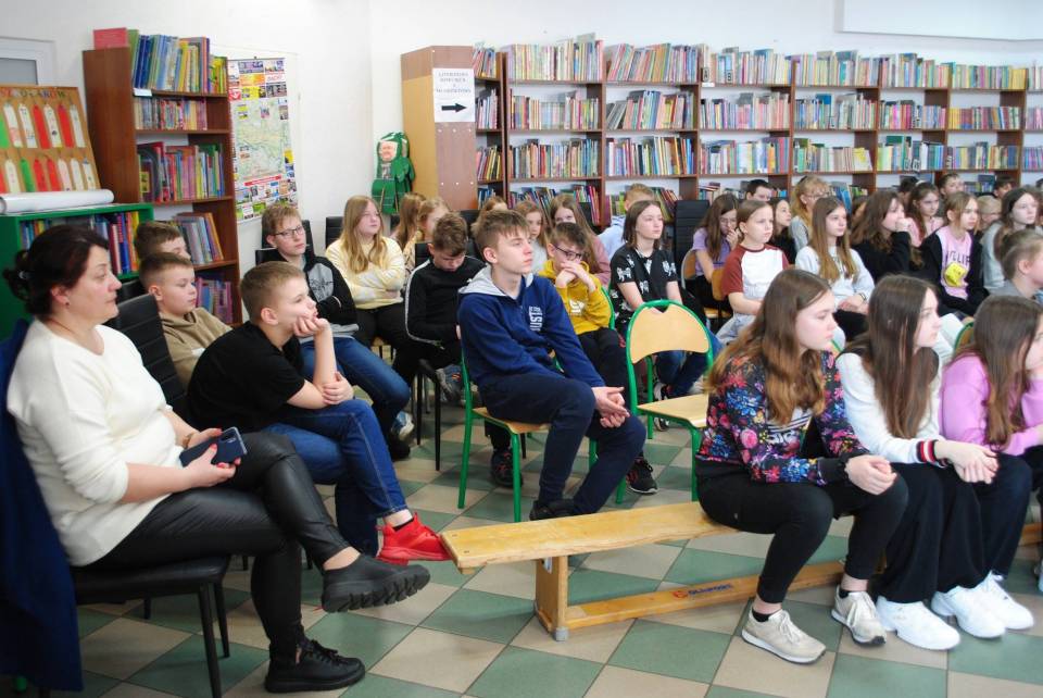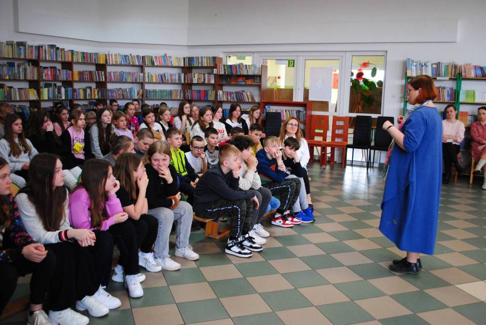 Podczas spotkania w bibliotece, w którym uczestniczyła młodzież z Zespołu Szkolno-Przedszkolnego w Rząśni, pisarka opowiadała o swojej twórczości, ale szczególnie skupiła się na swoich bohaterach. Na spotkaniu mogliśmy bliżej poznać książkę "Listy w butelce. Opowieść o Irenie Sendlerowej". Książka jest okazją, by przybliżyć dzieciom tę niezwykłą postać. Biografia Pani Ireny była pretekstem, by w obecnej sytuacji na świecie, rozmawiać z najmłodszymi na temat historii, wojny i niesieniu pomocy.
