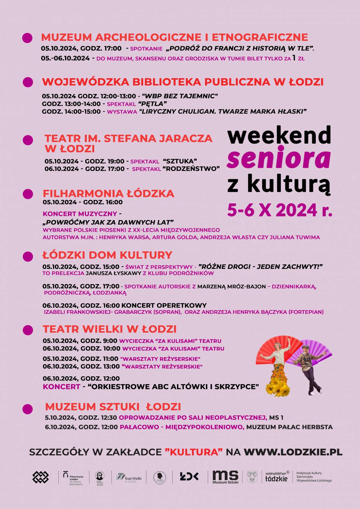Spektakle teatralne, koncerty, wystawy, warsztaty. Na najbliższy weekend, 5 i 6 października, instytucje kultury w całym kraju przygotowały dla seniorów specjalny program. Do akcji włączyły się oczywiście teatry, muzea, galerie i ośrodki kultury Samorządu Województwa Łódzkiego. Atrakcji jest wiele.