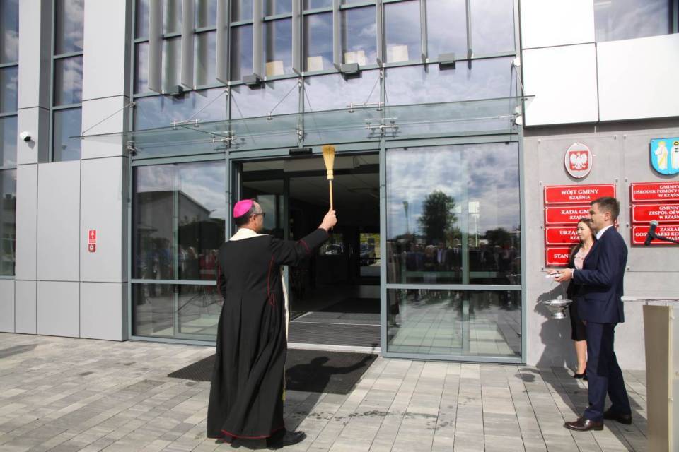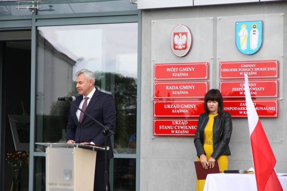 Na początku uroczystości, której gospodarzem był Tomasz Stolarczyk, wójt Rząśni, zebranym gościom krótko zaprezentowano historię budowy budynku, genezę jego powstania oraz opis zastosowanych w nim nowoczesnych, a przede wszystkim proekologicznych rozwiązań. Wójt podkreślał również w krótkim przemówieniu rolę współpracy samorządów i sfery rządowej na wszystkich szczeblach w tego rodzaju przedsięwzięciach, kładąc szczególny nacisk na konieczność wspólnego zgodnego, bezkonfliktowego działania na rzecz lokalnych społeczności.