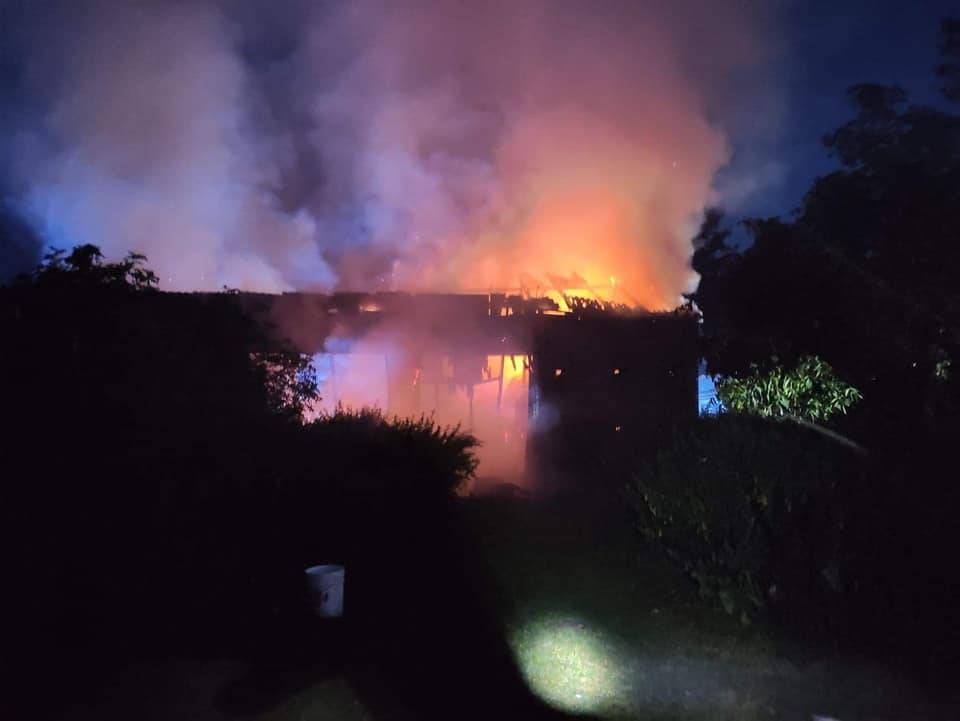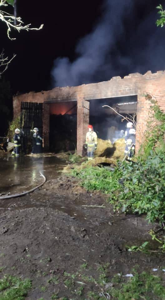 Tragiczny pożar w Dąbrowie Rusieckiej, całkowitemu spaleniu uległa stodoła. Niestety, mimo intensywnej akcji ponad 30 strażaków nie udało sie uratować dwóch koni. Jedno ze zwierząt spłonęło wewnątrz budynku, drugie mocno poparzone i zaczadzone padło, mimo, że opuściło budynek.