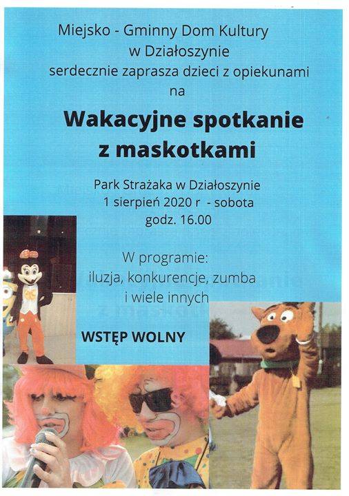 Miejsko - Gminny Dom Kultury w Działoszynie i grupa animacyjna Rytmiks serdecznie zapraszają na wakacyjne spotkanie z maskotkami.