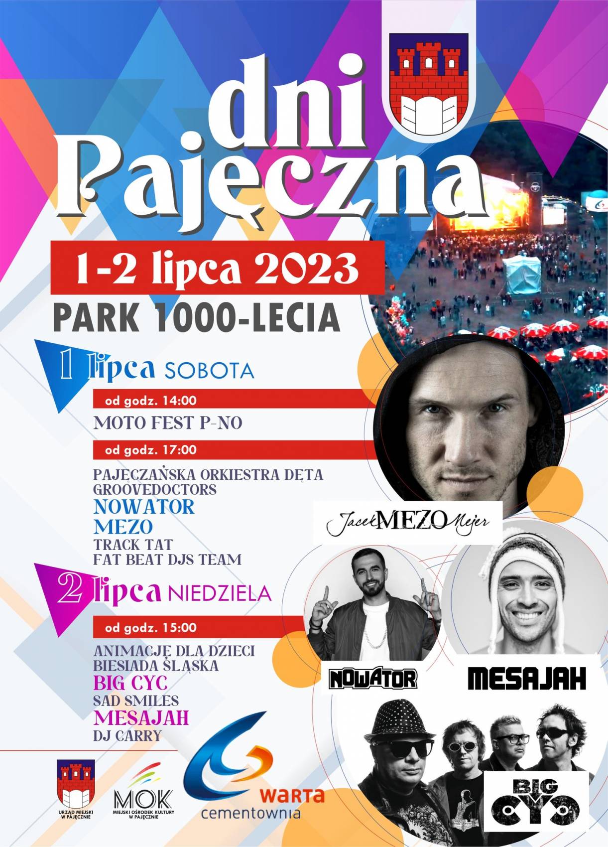 Dni Pajęczna ruszą w sobotę, 1 lipca i będzie to motocyklowa inauguracja. O godzinie 14.00 rusza bowiem Moto Fest. Od godziny 17.00 w Parku 1000-lecia ruszy blok koncertowy. Zainaugurują go lokalni artyście z pajęczańskiej Orkiestry Dętej. Z kolei później na scenie pojawią się sobotnie gwiazdy: Nowator i Mezo.