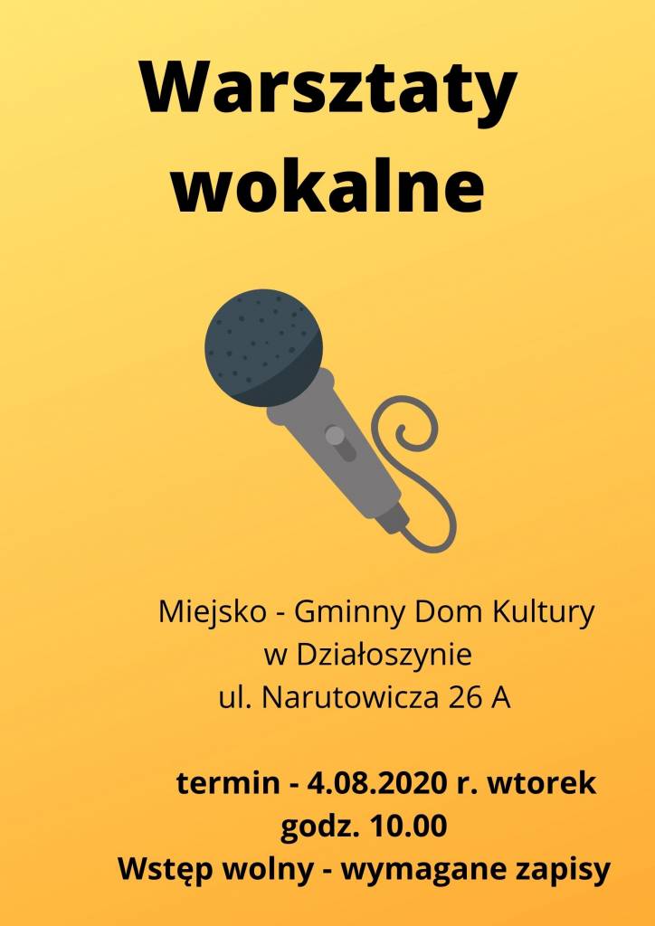 We wtorek, 4 sierpnia br. o godz. 10:00 w Miejsko-Gminnym Domu Kultury w Działoszynie odbędą się warsztaty wokalne.