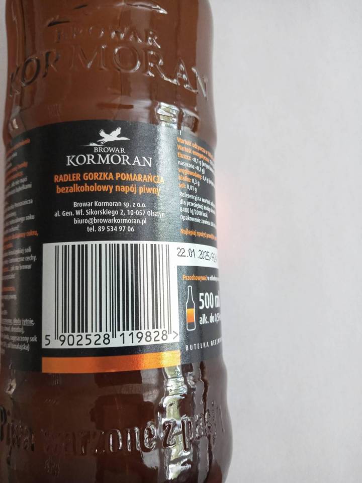 Główny Inspektorat Sanitarny został poinformowany, że producent bezalkoholowego radlera "Gorzka pomarańcza", czyli Browar Kormoran Sp. z o.o. wycofuje wskazaną poniżej partię bezalkoholowego napoju piwnego ze względu na ryzyko wybuchu butelek. Uszkodzenie opakować spowodowane jest prawdopodobnie zbyt dużym wysyceniem produktu dwutlenkiem węgla, mogące doprowadzić do uszkodzenia ciała.