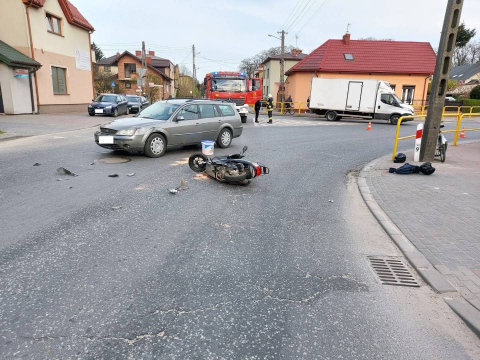 Do groźnego zdarzenia drogowego doszło na jednym ze skrzyżowań w Działoszynie. Kierujący motorowerem nie udzielił pierwszeństwa przejazdu doprowadzając do zderzenia z osobowym fordem. Kierujący motorowerem został przewieziony do szpitala.