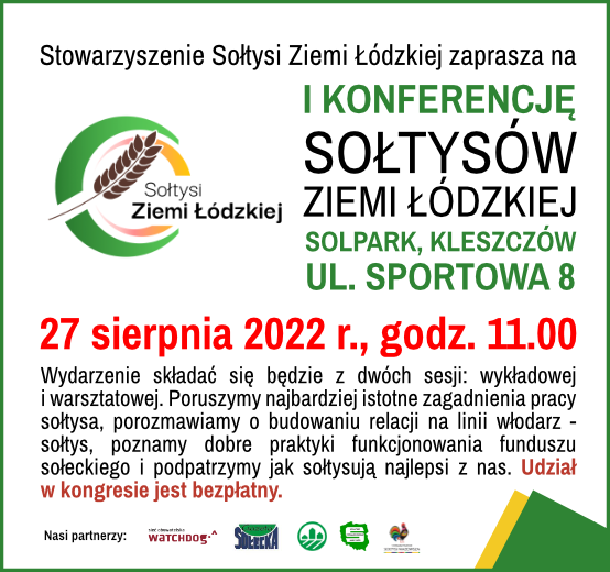 Przedstawiciele Stowarzyszenia Sołtysi Ziemi Łódzkiej zapraszają na I Konferencję Sołtysów Ziemi Łódzkiej, która odbędzie się w sobotę, 27 sierpnia 2022 r. w Kleszczowie przy ulicy Sportowej 8. Początek o godzinie 11.00. Udział w Konferencji będzie bezpłatny.